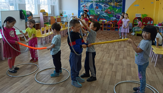 Во время режимных моментов проводились пальчиковые гимнастики «Веселые ручки», «Наши пальцы дружно в ряд», дыхательная гимнастика. Подвижные игры проводились как на прогулке, так и в свободной деятельности. На прогулке дети старшей и подготовительной к школе групп закрепили знание тувинских народных игр «Аскак – кадай»(«Хромая старуха», «Чинчи»(«Бусинка»).